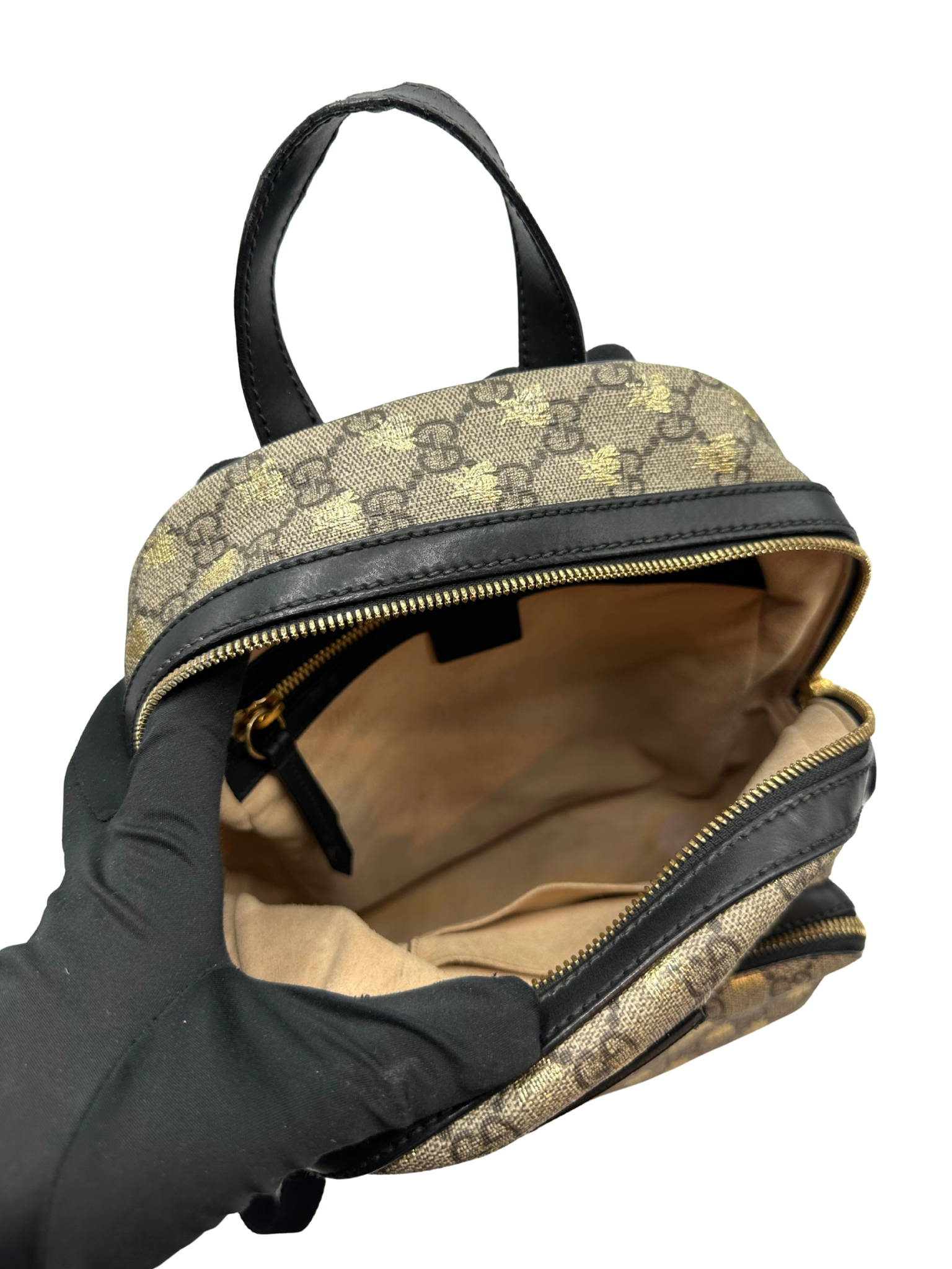 Mochila Pequeña Gucci GG Supreme Gold Bees.