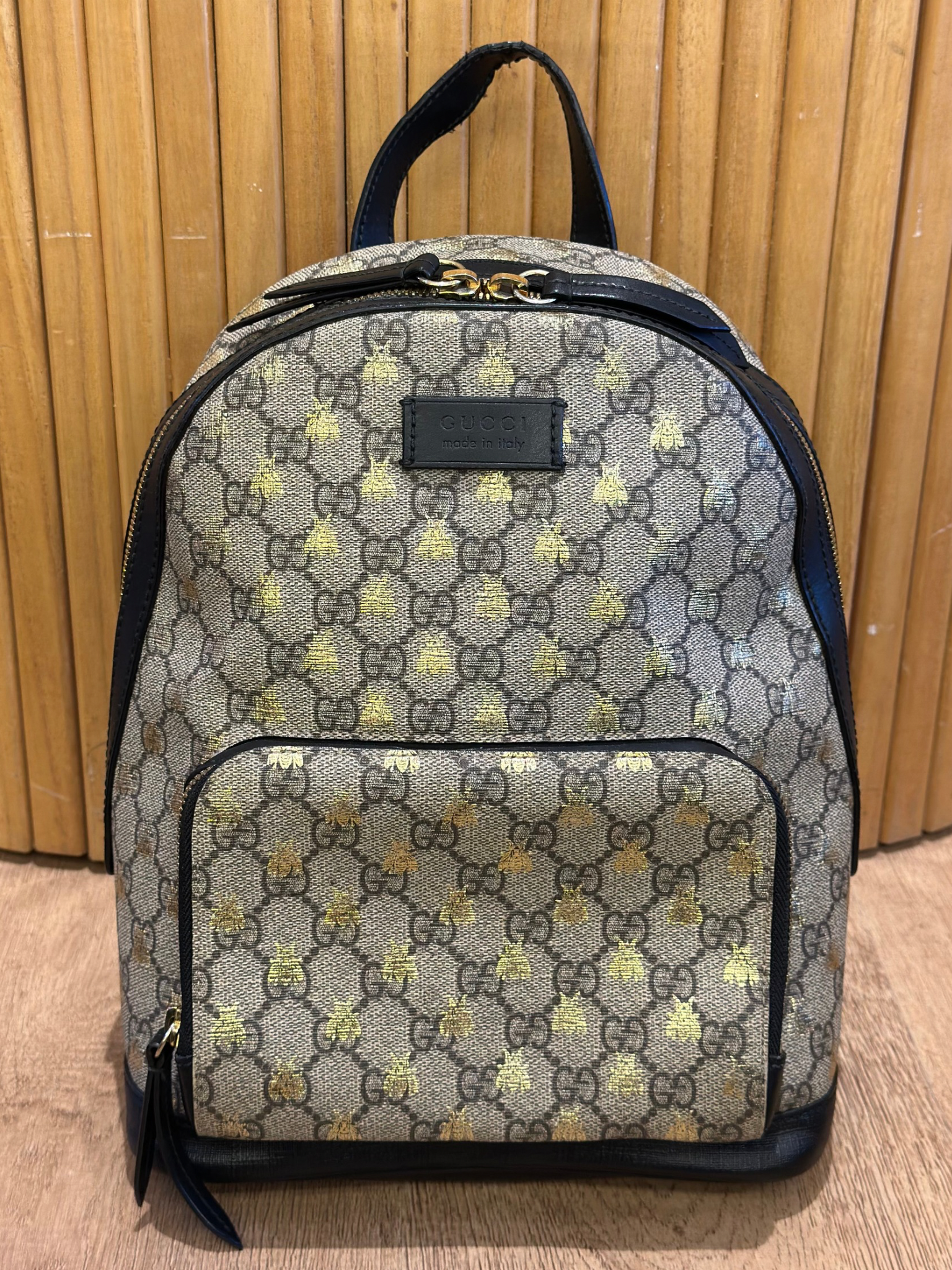 Mochila Pequeña Gucci GG Supreme Gold Bees